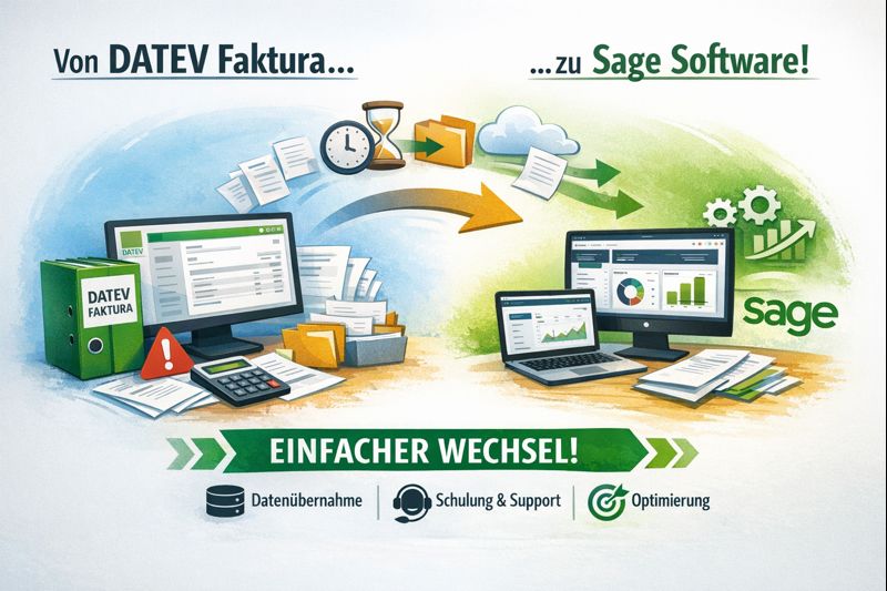 Sichern Sie sich jetzt Ihren Slot für die Migration von Datev Faktura zu Sage Software.